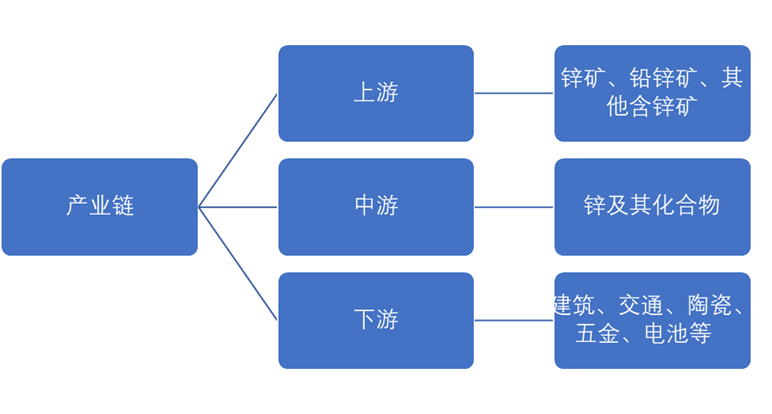根据市场调查数据显示,上游为各类锌矿,自然界中绝大多数金属以化合物的形式存在,锌通常与铅等其他金属物质共存,如铅锌矿、硅锌矿、闪锌矿等,但含锌量有区别,从锌矿中经过挑选检测,得到含锌量50%左右的含锌矿为锌精矿;中游为锌及其各种化合物,中游大多为炼锌企业和工厂,将挑选过的锌精矿通过冶炼、制作等工序,按下游产业需求制作出纯锌、锌基合金、氧化锌、镀锌、锌块等产品;下游为锌产品的应用领域,主要是汽车、建筑、轻工、陶瓷、机械、电池等行业。